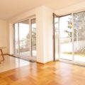 podlahy bytu tvoria drevenné parkety, mramor a keramické podlahy.