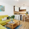 Výnimočnosť tejto nehnuteľnosti dodávajú veľkoformátové okná po celej dĺžke obývačky, ktoré už od rána prinášajú do bytu slnečnú atmosféru.